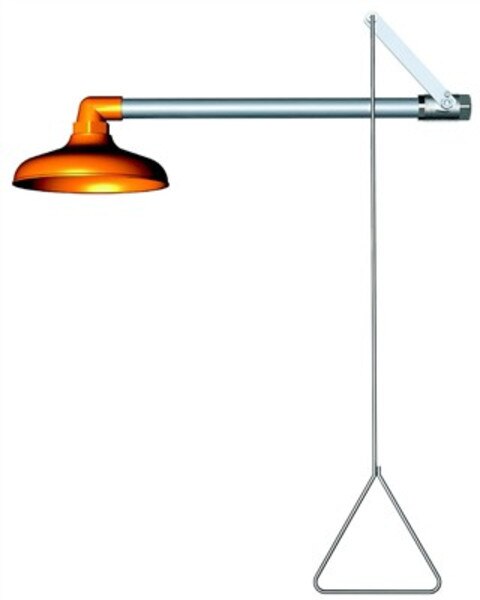 Handicapped accessible emergency shower for horizontal (GBF1643) mounting. Unit should be installed so that shower head is at least 82" above floor and 32" from wall or nearest obstruction.ADA Compliance: When installed at recommended mounting heights, unit complies with ADA requirements for accessibility by handicapped persons (maximum height and reach and distance from obstructions).Shower Head: 10" diameter orange ABS plastic.