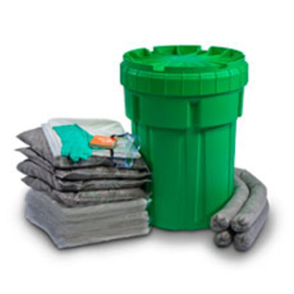 Universal kit can be used to absorb both oil- and water-based spills, including gasoline, kerosene, coolants, solvents.